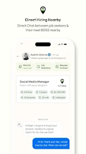 HiBOSS: Прямой найм рядом - это инновационное Android-приложение, разработанное для облегчения прямых связей между соискателями и местными работодателями в реальном времени. Это бесплатное приложение позволяет соискателям размещать свои предпочтения по работе и участвовать в мгновенных чатах с менеджерами по найму, что позволяет быстро и эффективно планировать собеседования. Платформа гарантирует проверенную среду, повышая безопасность процесса поиска работы, защищая конфиденциальность пользователей и позволяя им делиться своими резюме и контактной информацией только с согласия.